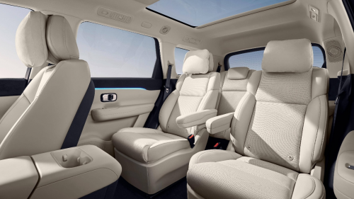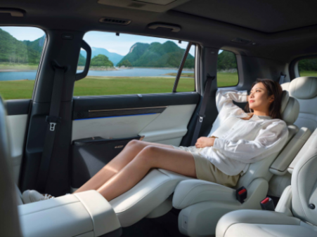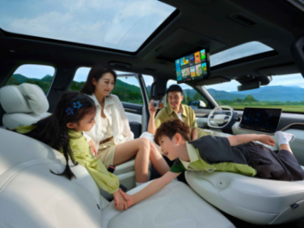 eπ008的车身尺寸在同级中表现突出,5米车长配合3米轴距,即使是6座版本也能确保每个座位享有宽敞空间,完美适配二胎家庭需求,后备厢容积同样可观,轻松容纳全家行李。在舒适性配置上,eπ008今年推出的如奕版车型将以往需要选装的“冰箱彩电大沙发”升级为标配:配备可实现5度制冷或50度制热的冷暖两用智能冰箱;6座版的二三排座椅间甚至支持电动滑移;后排配备15.6英寸智能娱乐屏;5座版标配魔毯座椅,6座版则提供零重力座椅。再结合20扬声器WANOS全景声音响、遮阳帘等配置,将后排乘坐体验提升至VIP级别。