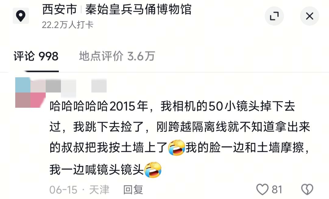 近日,多位游客在社交媒体上分享了自己的“马虎时刻”,“在一号坑,就一个侧身想拍张全景照,幅度太大,导致握着的手机哧溜就滑脱了,眼睁睁看它掉进栏杆底下,心都凉了半截!”另一位女性网友的经历更具戏剧性:“二号坑里听得太入神,一甩头发,耳环直接飞了出去,落在坑里找都找不见,真是又急又尴尬。”