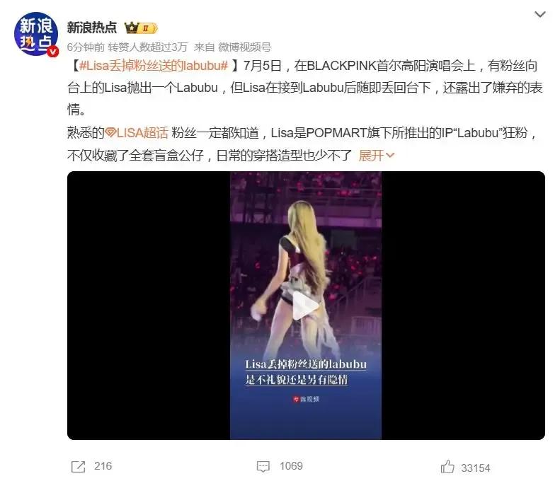 7月的风卷着应援棒的蓝光,高阳体育场的舞台却被一声惊呼划破——Lisa弯腰捡起粉丝抛来的labubu时,发梢还沾着《Pink Venom》的劲曲余韵,可当看清那团毛茸茸的玩偶,她的睫毛猛地颤了颤,嘴角的笑意瞬间凝固。下一秒,那抹粉色被"啪"地甩向台下,像丢弃一块烫手山芋。
