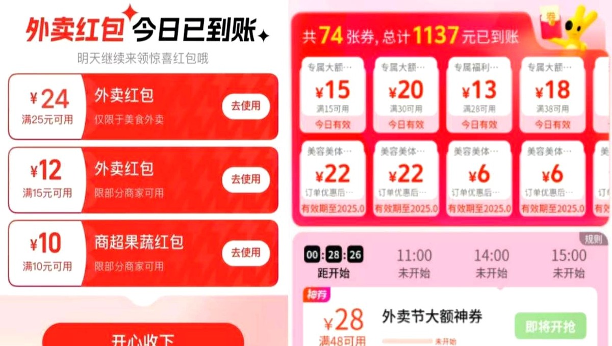 美团推0元咖啡券,淘宝闪购发18.8元免单卡,京东直接砸103块补贴包。