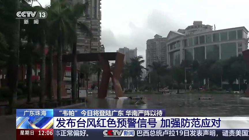 关于广东珠海情况,来看总台记者稍早前发挥的报道。我现在所处的位置是属于十到十二级的风圈,跟随我手指的方向能看到树木是有剧烈的摇晃,而且我记着一百五十斤左右也都已经是被风给带着跑了。同时也能感受到雨是横着打过来,在脸上是有严重的刺痛感的。