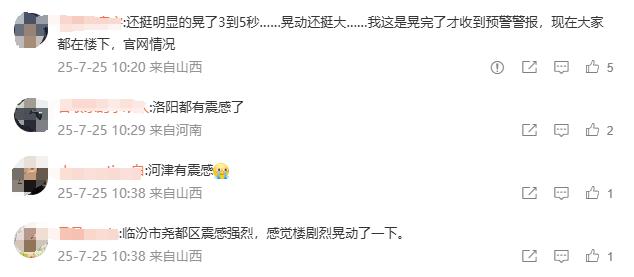 评论区多地网友表示震感明显:
