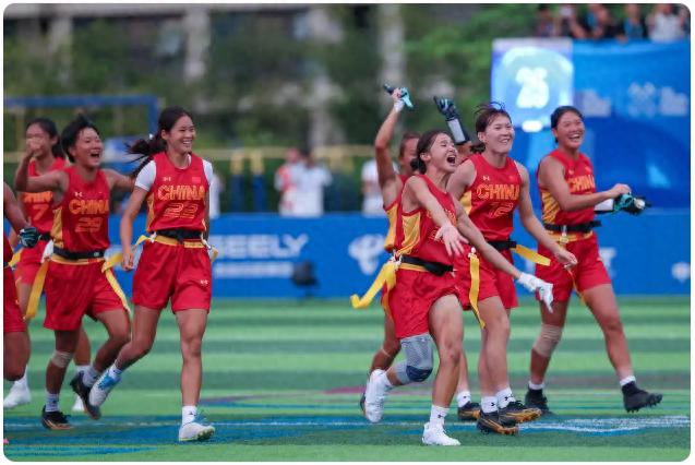 历史性的一刻到来了!在16日成都世运会女子腰旗橄榄球5-8名安慰赛半决赛中,中国队以28:22战胜日本队。从选拔到建队不满五个月的中国队,获得了队史第一场正式比赛胜利!