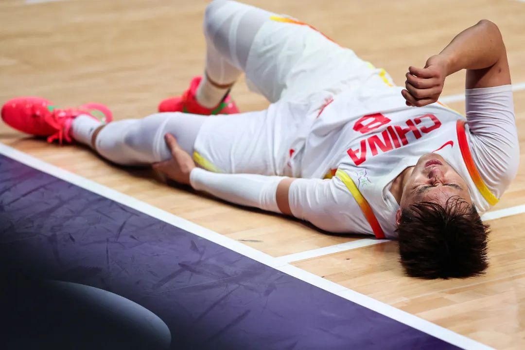 第二节,赵睿突破受伤倒地,新西兰连续防守反击得分,将比分追至40-42。