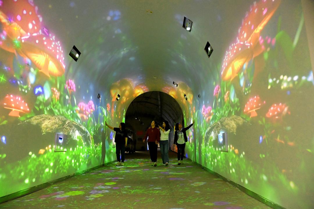石家庄通山工程直接变成一个“地下游乐园”,面积相当于10个标准足球场大小。外面热浪滚滚,里面凉风习习,小朋友能坐小火车穿过昔日的战备长廊,还能玩模拟足球、模拟篮球、皮影戏等互动游戏,20多个项目随便选。
