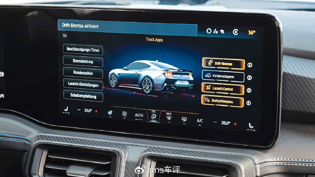于是,霍根海姆那条被无数加速赛熏黑的柏油,就成了Mustang的舞台。进入Drag模式后,悬挂被预压,系统甚至在数字仪表里模拟出经典1964款Mustang的条带转速表与起跑灯。配合可调的弹射起步模式,驾驶者可自由设定起步转速和换挡提示。
