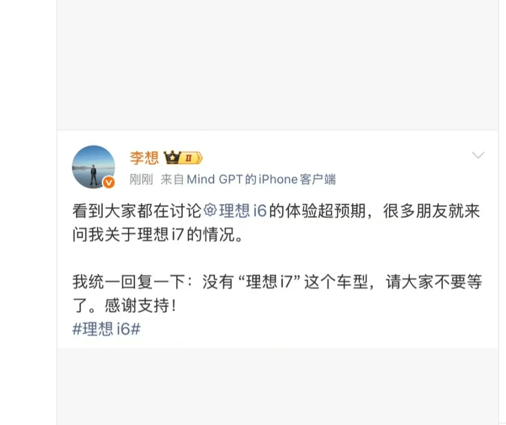 值得注意的是,还有“反转”声音出现,有网友声称“2026年5月26日理想i7正式上市”,理由是“不能辜负广大客户”,但这一说法与李想“没有i7”的官方表态相悖,更像是个别用户的期待而非真实规划,并未获得广泛认可。多数人仍以李想的回复为依据,认为理想短期内不会改变i系列“只有i6和i8”的布局,未来若有新产品,也更可能聚焦于i9或5.2米级车型的研发,而非重启i7项目。