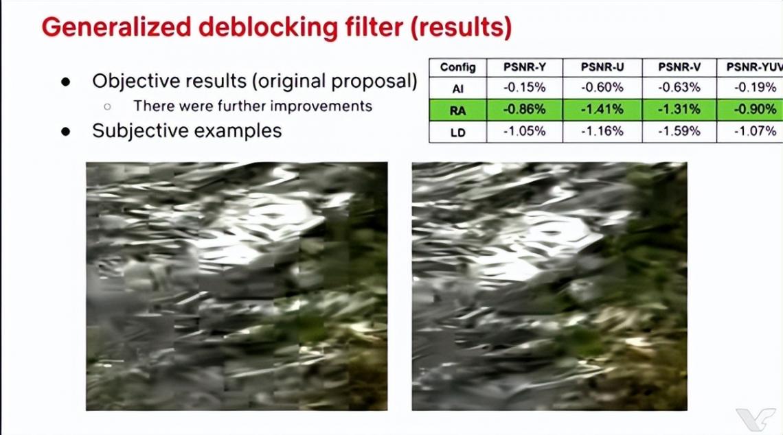 滤波与后处理技术也已升级,单个通用去块效应滤波器可以更好地保留细节,而导向细节滤波器(Guided Detail Filter)、跨分量采样偏移(Cross-Component Sample Offset)等新型滤波器,可以进一步清除压缩噪声。