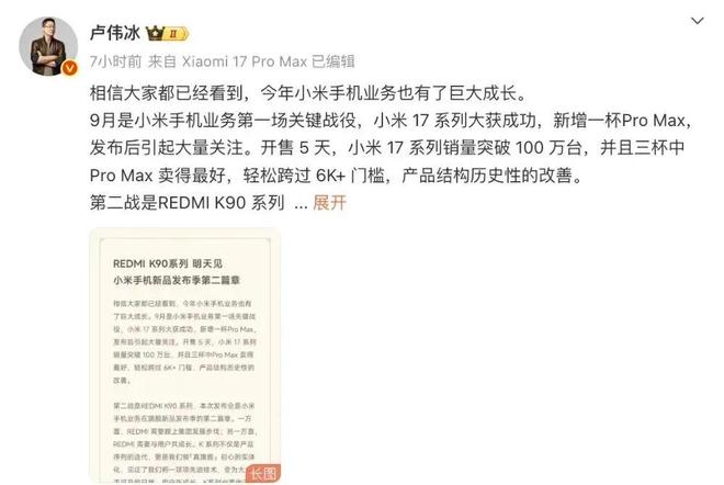 卢伟冰此前表示,“全新的 K90 系列有两点变化就是提档和变阵。第一,产品发布时间提档,从十一月提前至十月。第二,K 首次推出Pro Max版本,也是集团今年的第二款 Pro Max。”