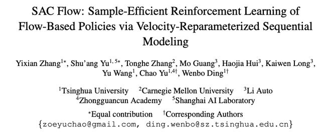 一种用高数据效率强化学习算法 SAC 训练流策略的新方案,可以端到端优化真实的流策略,而无需采用替代目标或者策略蒸馏。SAC FLow 的核心思想是把流策略视作一个 residual RNN,再用 GRU 门控和 Transformer Decoder 两套速度参数化。SAC FLow 在 MuJoCo、OGBench、Robomimic 上达到了极高的数据效率和显著 SOTA 的性能。