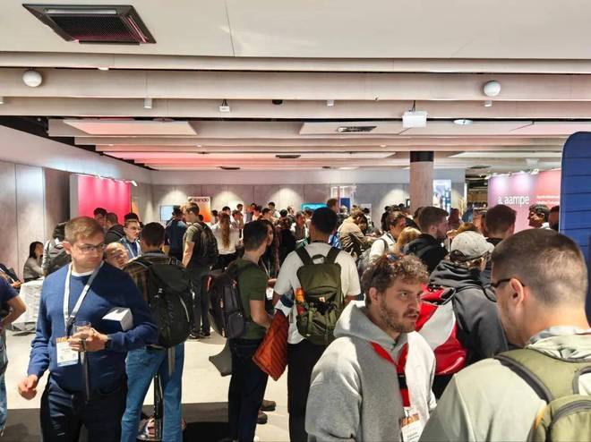 演讲结束后,现场爆发了非常热烈的掌声,演讲者也被热情的同行们追问各种技术细节,展台甚至出现了排队提问交流的盛况。