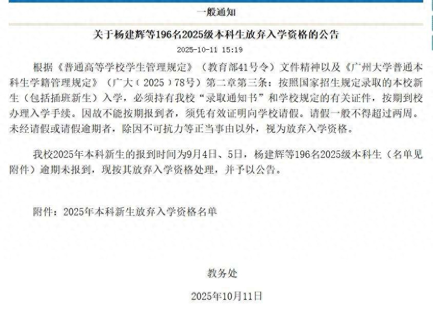 这让我想起去年广东白云学院有1477名新生没报到,当时还上了热搜,广州大学这次也有196人放弃,这种事在高校里挺常见的,招生专家黄跃雄说,连清华北大都留不住所有学生,双一流高校报到率大概九成九,民办学校能有九成就不错了,现在学生不光是想有学上,他们更愿意去考虑别的路,比如出国、考公,或者直接去上班。