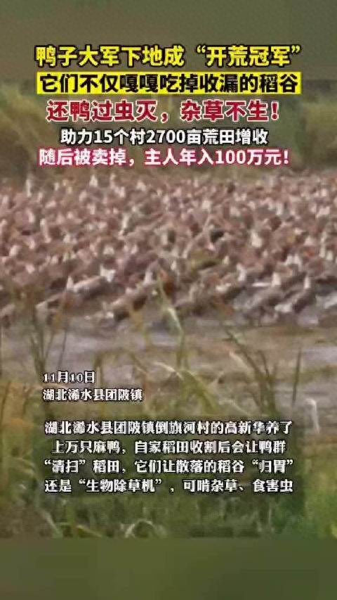 鸭子能种地?"——别笑,这事儿还真发生了!湖北某村上演了一出"鸭子开荒记",一群嘎嘎叫的小家伙,硬是把一片荒地变成了丰收田。这背后到底藏着什么玄机?